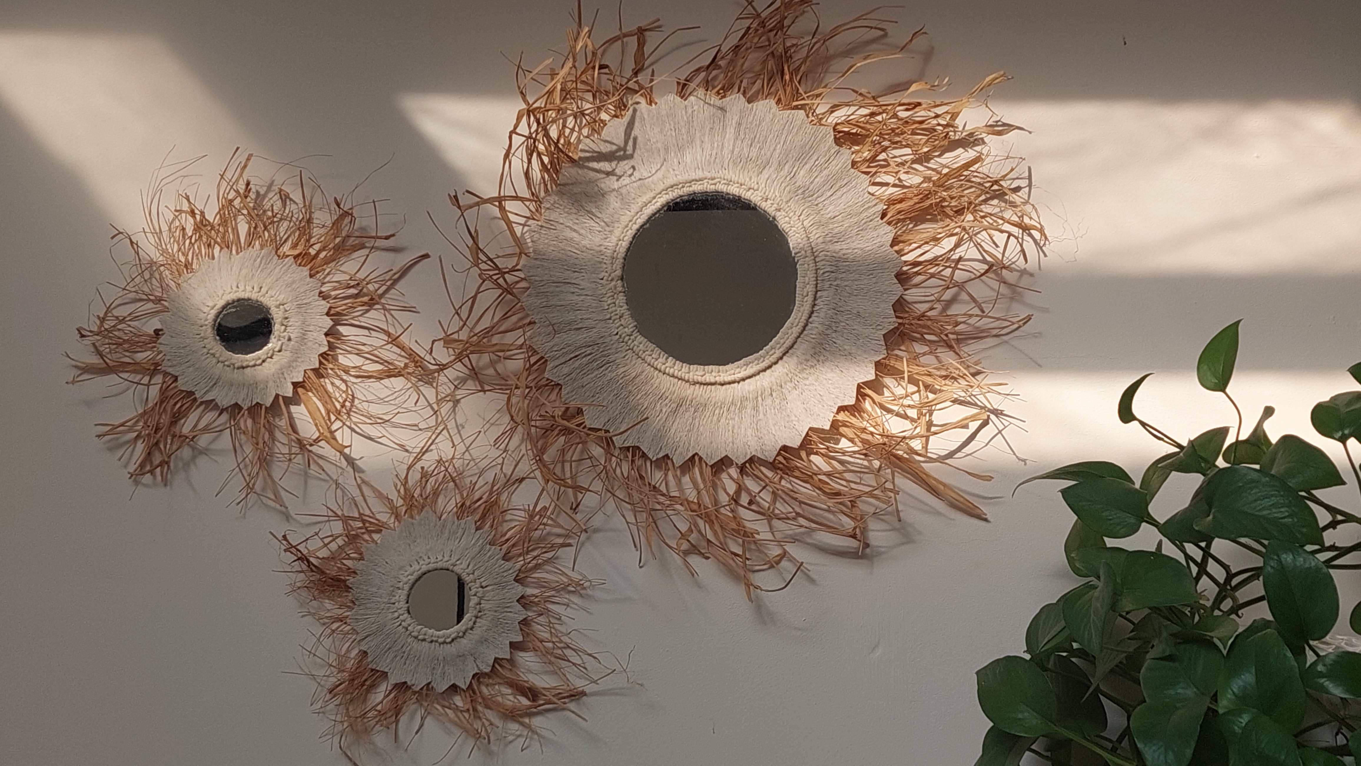 آینه های تلفیق مکرمه و رافیا که علاقه مندان سبک مینیمال و بوهو میتونن برای دیزاین خونه ، رستوران ، سالن زیبایی ، دکور آتلیه استفاده کنن