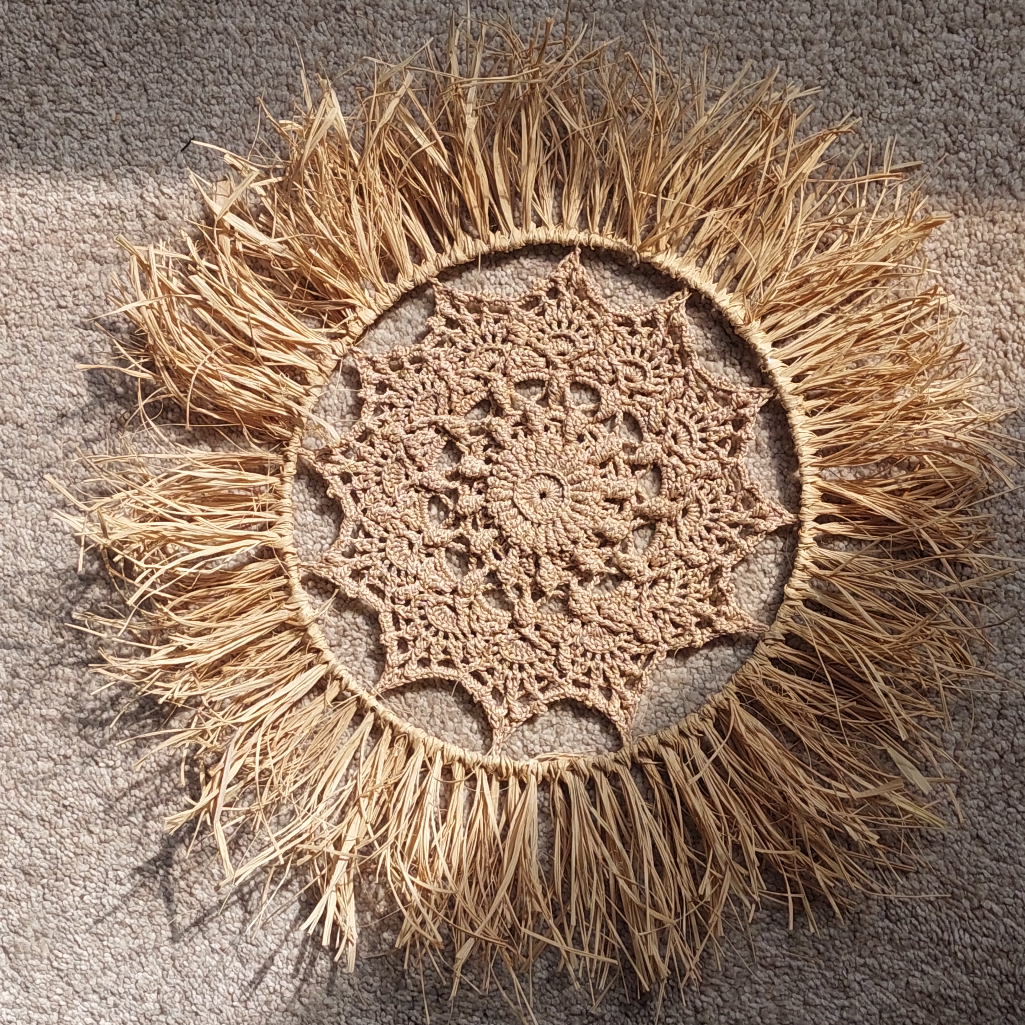 دیوارکوب رافیا طرح خورشید قطر ۴۰ سانت رنگ نسکافه ای روشن