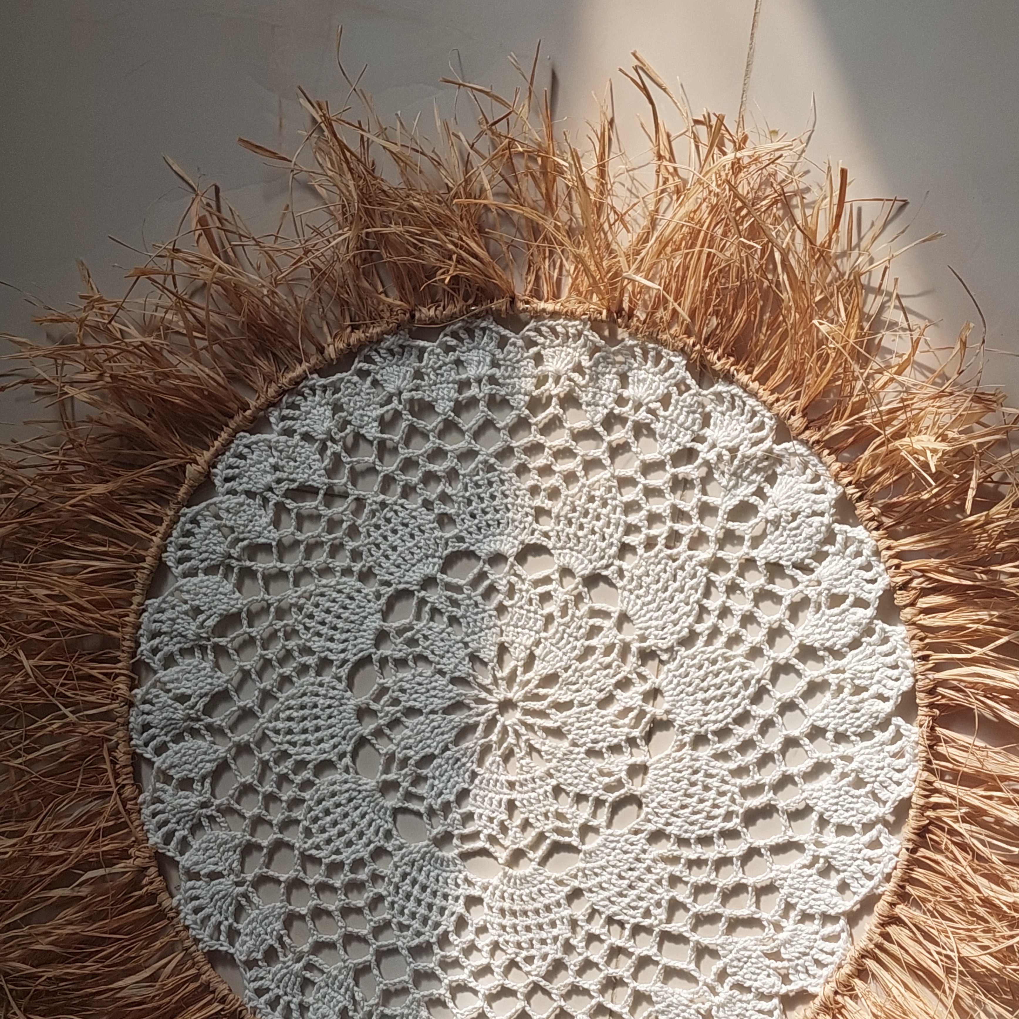 دیوارکوب رافیا طرح گلبرگ قطر ۵۰ سانت سفید رنگ