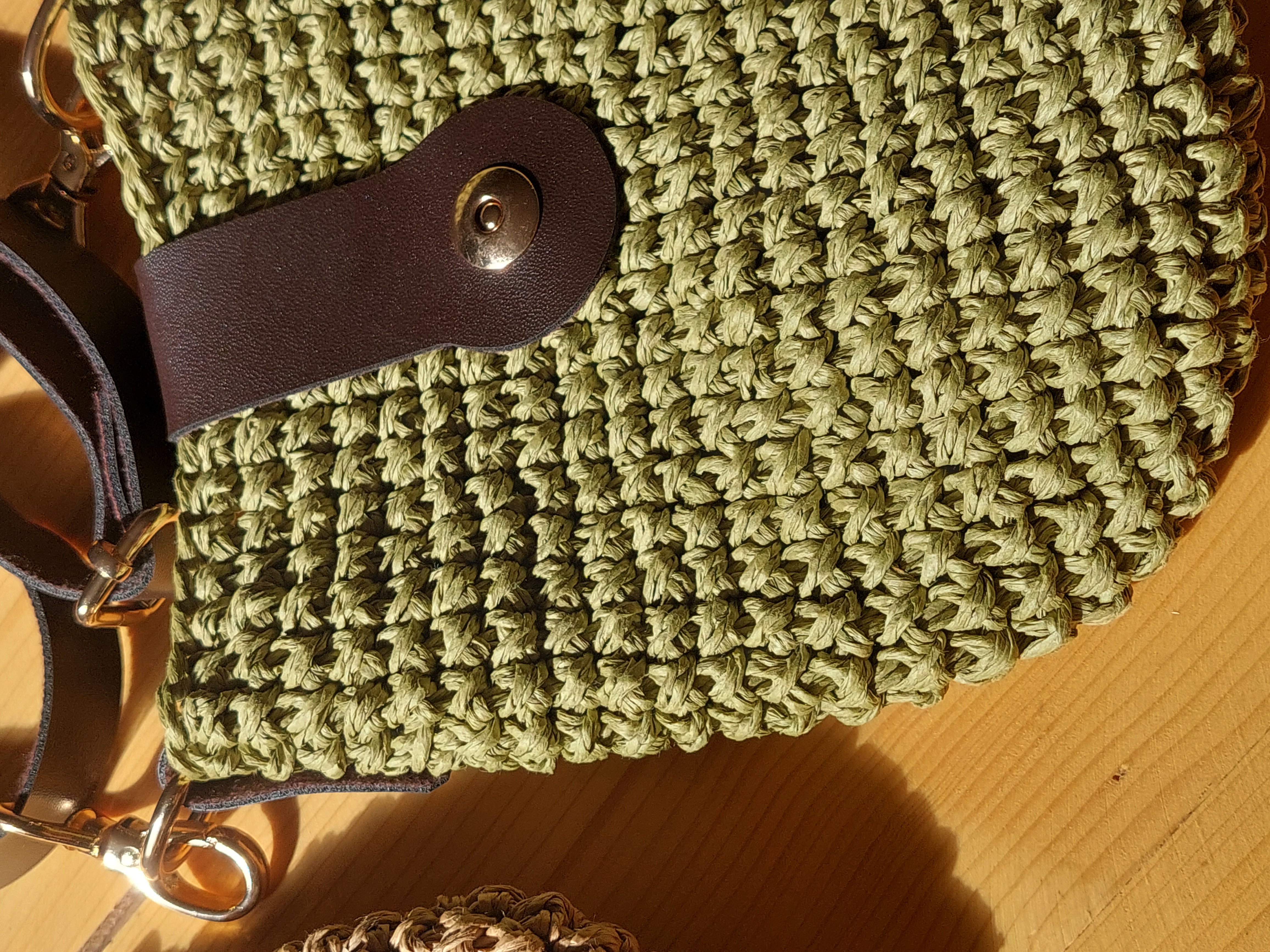 کیف دوشی رافیا رنگ سبز و کنفی ابعاد ۲۰×۲۰ قیمت برای هر عدد کیف است